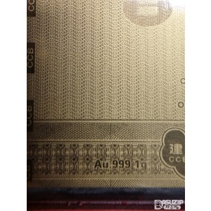 2017년 정유년(닭띠해)을 기념하여 중국건설은행에서 발행한 1g 순금 기념 지폐입니다.