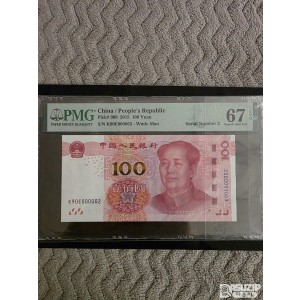 그레이딩 지폐: 특이번호 : 2015년 100위안 빠른번호(02번) PMG 67등급