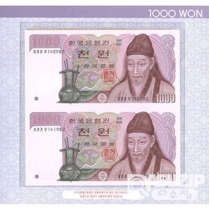 한국은행 2차 1000원권 2매 연결권입니다.