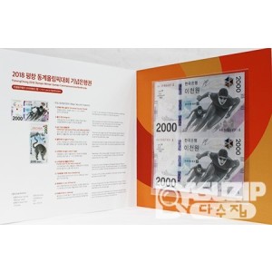 한국은행 2018년 평창 동계올림픽대회 기념은행권 2000원권 2매 연결권입니다.