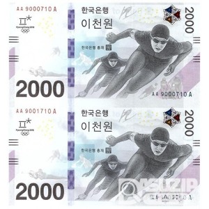 2018년 평창 동계올림픽대회 기념은행권 2000원권 2매 연결권/ AA 9000801 A