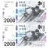 2018년 평창 동계올림픽대회 기념은행권 2000원권 2매 연결권/ AA 9000709 A