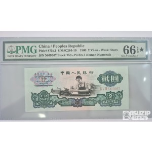 1960년 인민은행 3차 2위안 스타노트 PMG 66등급 지폐번호: 5409367