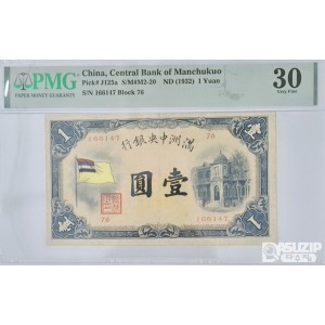 1932년 만주국 중앙은행 1위안으로 중국 청나라의 마지막황제 푸위를 앞세워 일본 침략자들에 의해 만주국을 설립 했으며 그 당시 자체 발행한 화폐. 만주국은 1945년 8월 일본 패망과 함께 멸망 함.