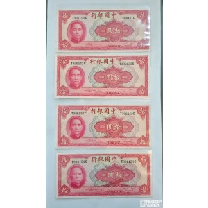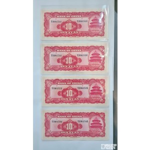 1940년 중국은행 10위안 연번 4장 396151~4