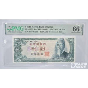 그레이딩 지폐: 세종 백원(적) PMG 66등급