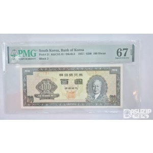 그레이딩 지폐: 우이박 백환 반번호 #2 PMG 67등급(고등급)
