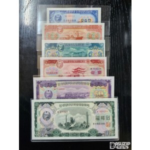 1959년 발행된 A급 북한지폐 6종 풀세트