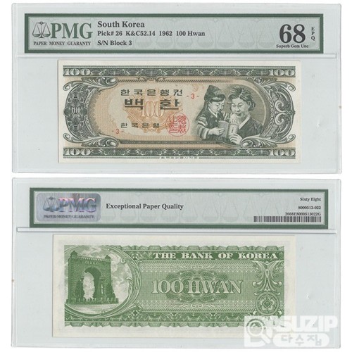 한국은행 1962년 이전 환권 모자상 백환 3번 68등급(협의)